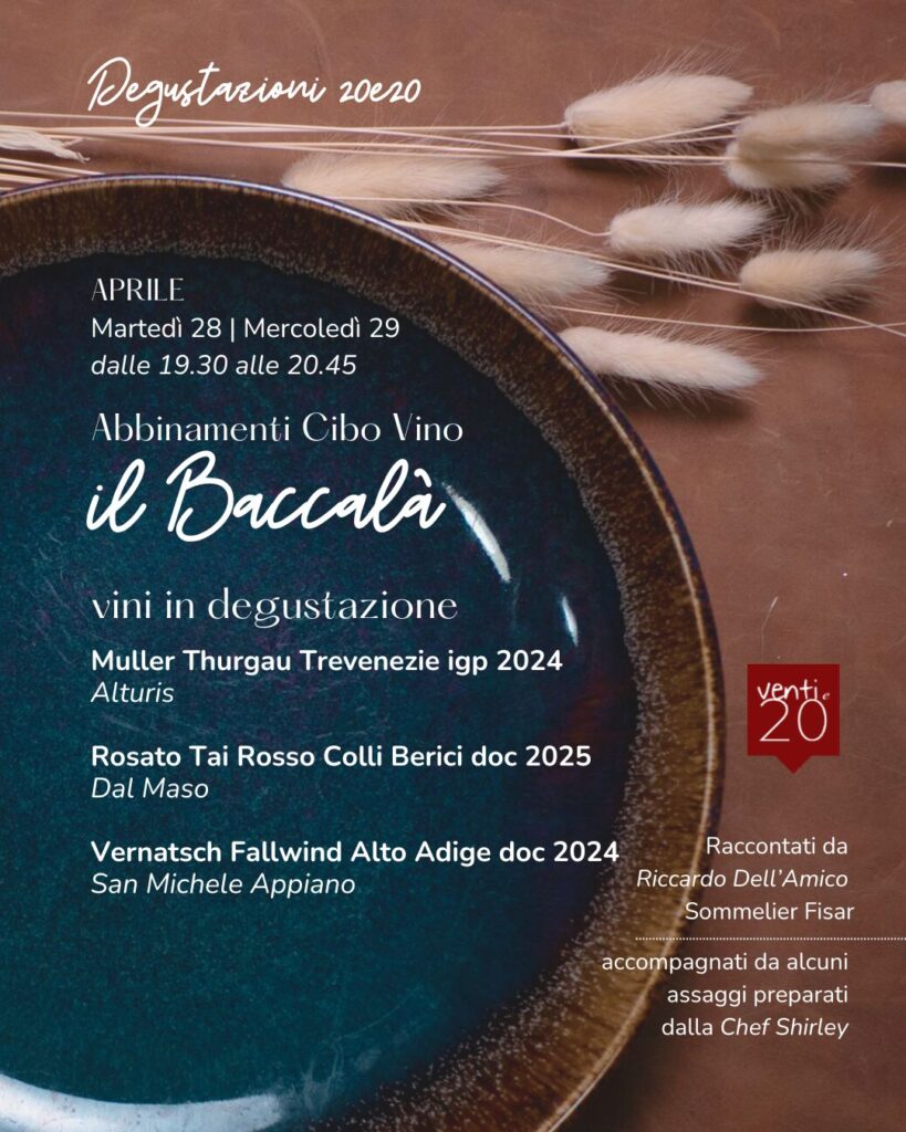Nella prossima serata, parleremo degli abbinamenti del vino con il baccalà.