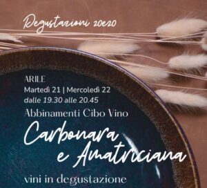 Abbinamento Cibo Vino – Carbonara e Amatriciana – Martedì 21 e Mercoledì 22 Aprile 2026 (ore 19:30)